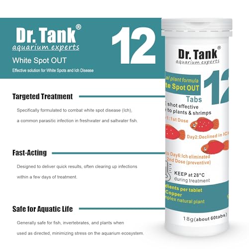 Dr. Tank #12 White Spot Out – Ich Treatment for Freshwater Fish – Eliminates Ick White Spot Disease – Safe for Aquatic Plants – 60 Tablets