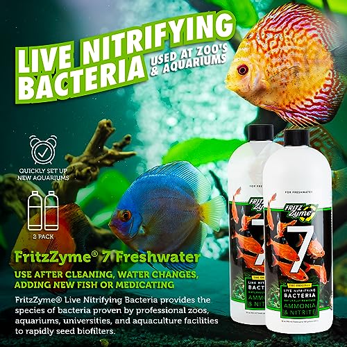 Fritz Aquatics FritzZyme 7 Live Nitrifying Bacteria Naturally Removes Amonia & Nitrite for Freshwater Fish (32-Ounce | 2-Pack)